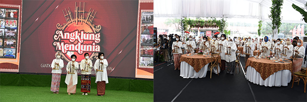 Hal tersebut disampaikan Ibu Negara Republik Indonesia Hj. Iriana Joko Widodo secara virtual pada acara Angklung Mendunia tahun 2021 yang dipusatkan di Museum Satria Mandala, Pusjarah TNI, Jakarta Selatan, Senin (8/11/2021). Peringatan hari angklung sedunia setiap tanggal 16 November harus dijadikan momentum untuk membangkitkan kecintaan dan kepedulian kepada angklung. “Memainkan kembali angklung di berbagai acara di Indonesia juga di berbagai belahan dunia dan melestarikan dengan membuatnya semakin mendunia,” katanya.