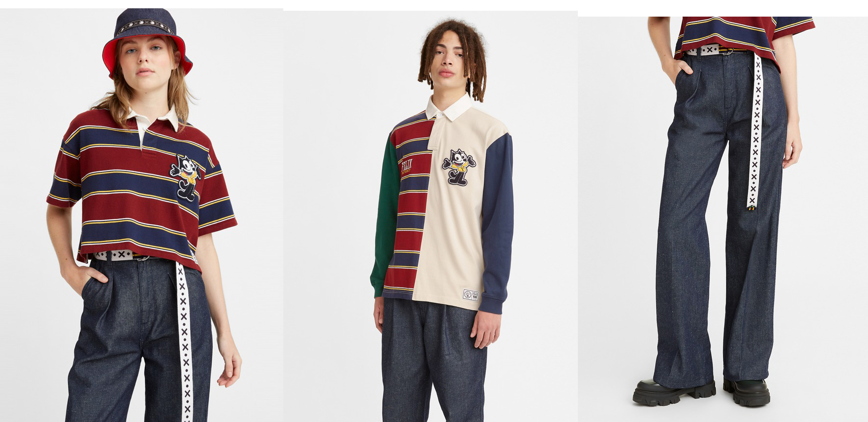 Felix the Cat adalah salah satu karakter kartun yang paling dikenal dalam sejarah film dan TV pada tahun 1950-an sampai 1960-an. Levi’s® membawa kembali tampilan ikonik Felix the Cat dalamkoleksi Felix the Graduate, paduan sempurna antara antara masa lalu dan masa kini dalam sebuah kultur pop. Bisa dilihat sentuhan kontemporer pada rugby, hoodies, celana, dan atasan yang pernah populer di era 90an, Felix the Graduatemenampilkan gaya streetwear 90an dalam berbagai bentuk dan siluet yang modern.