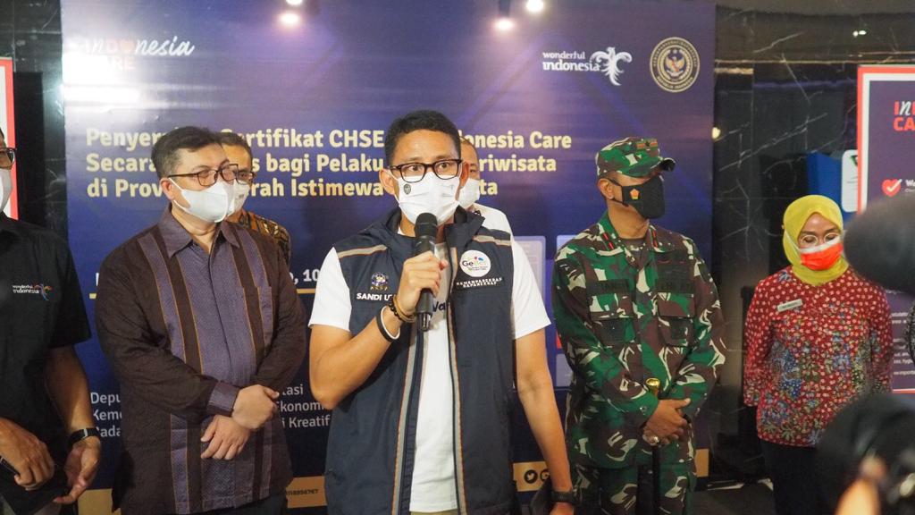 WISATABLOID.com – Kementerian Pariwisata dan Ekonomi Kreatif, TNI AD, dan grup perhotelan Accor berkolaborasi menggelar kegiatan vaksinasi Covid-19 dan bakti sosial bagi pelaku Pariwisata dan ekonomi kreatif di Provinsi Daerah Istimewa Yogyakarta. Kegiatan yang berlangsung selama 2 hari tanggal 10-11 Oktober 2021 ini merupakan bentuk dukungan nyata demi melindungi masyarakat luas dan dalam upaya pengendalian pandemi Covid-19.Â