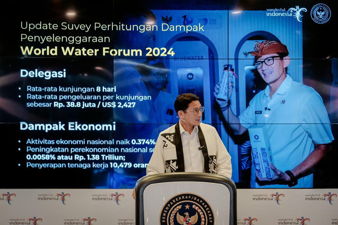 Lebih jauh Menparekraf Sandiaga mengungkapkan bahwa penyelenggaraan World Water Forum 2024 dirasakan telah mampu menggerakan aktivitas perekonomian secara nasional, baik Bali sebagai tuan rumah maupun aktivitas ekonomi secara nasional.