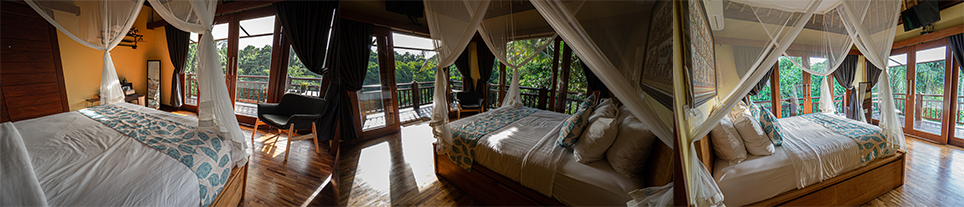 Atau tamu juga dapat mencoba tipe kamar Forest Retreat yang memiliki area balkoni yang sangat luas dengan pemandangan spektakuler. Jika Anda menginginkan kamar dengan bathub, Anda dapat mencoba tipe kamar Forest Labyrinth Room.