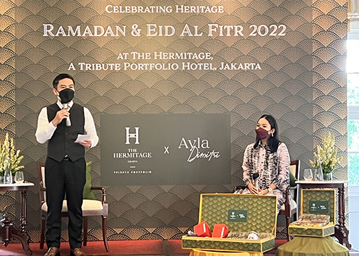 Tahun ini, The Hermitage Jakarta merangkul salah satu tokoh gaya hidup dan fesyen berpengaruh di Indonesia, Ayla Dimitri, untuk menciptakan Lebaran Hampers yang cantik berhiaskan desain motif buatannya. “Saya selalu dibuat kagum dengan sejarah kolonial The Hermitage Jakarta, keindahan desain art deco bangunannya, serta tawarannya yang memikat,” ujar Ayla.