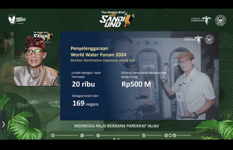 WISATABLOID.com – Menteri Pariwisata dan Ekonomi Kreatif/Kepala Badan Pariwisata dan Ekonomi Kreatif (Menparekraf/Kabaparekraf) Sandiaga Salahuddin Uno mengungkapkan, penyelenggaraan World Water Forum 2024 memberikan destination exposure yang efektif untuk Bali.