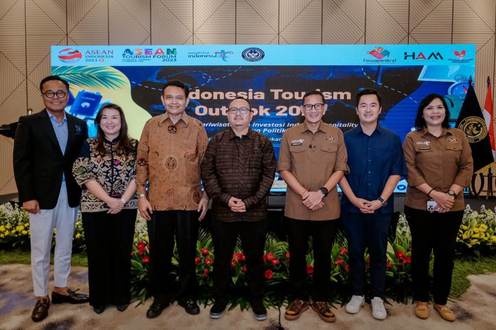 “Jadi kalau ditanya gimana tahun politik? don’t worry bro! Tahun politik ini bukan tahun wait and seetapi tahun yang penuh peluang investasi. Jadi tagline-nya 2023 jangan wait and see tapi segera investasi untuk berwisata di Indonesia saja,” tandas mantan pengusaha dan investor itu.