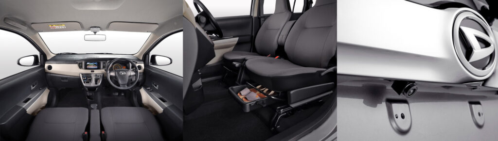 Pada sisi Interior, suasana kabin Sigra tampil berbeda dengan sentuhan nuansa warna 2-tone colors dark & light grey, memberikan kesan lebih mewah. Pada bagian center cluster, knob AC tampil lebih kekinian dan memudahkan pengguna dalam mengatur suhu kabin dalam mobil. Sigra juga dilengkapi dengan 2-DIN touchscreen audio, serta electric retractable mirror pada beberapa varian.