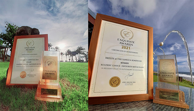 Exquisite Awards diselenggarakan oleh Exquisite Media, sebuah grup media yang berfokus pada kemewahan dan high-end market. Penghargaan tahunan bergengsi ini diselenggarakan untuk menghormati hotel, vila, restoran, spa, bar, beach club, dan wedding venue yang paling mewah, paling indah, dan paling menarik di Bali dan Jakarta berdasarkan perhitungan online voting. Bapak Erick Hardiansyah sebagai general manager The Samaya Seminyak dengan bangga menerima penghargaan di atas panggung pada hari Sabtu, tanggal 4 Desember 2021 lalu.